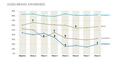 Measuring brand attributes over time, monitoring changes in consumer perception in response to internal and external drivers